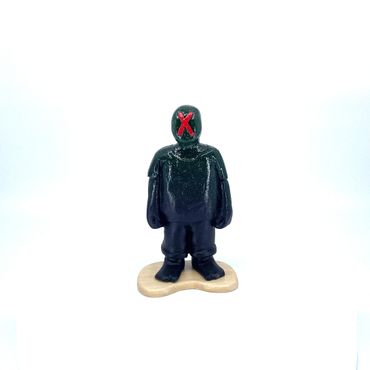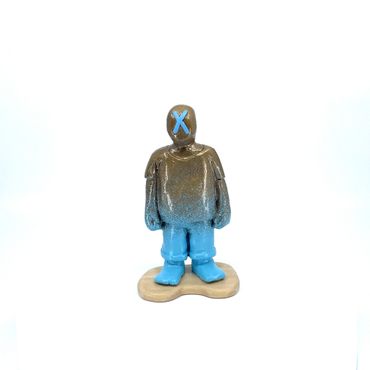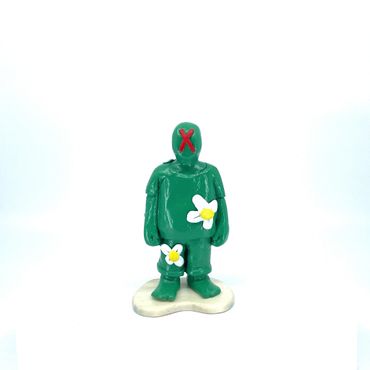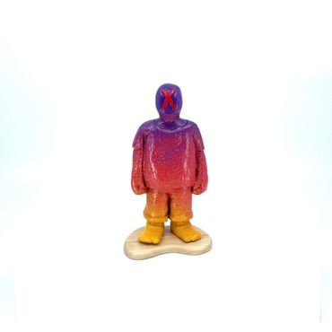 My desire to create hand held figurines and sculptures stems from my childhood of playing with GI joes, recreating battle scenes and articulating them in cool positions. Since developing this character throughout high school and now into even my most recent painting, I always knew I wanted to bring him off of the canvas.