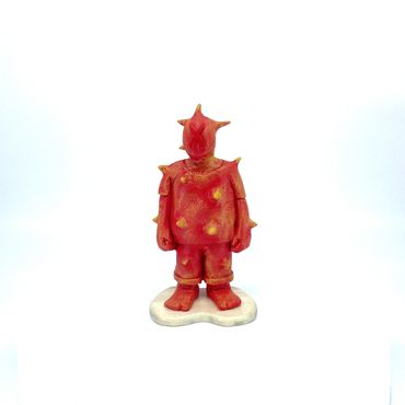 I sculpted the original figurine in early 2023 and created my first mold of him by the end of summer. These figures are casted in resin and hand-painted individually after fully cured. Pieces you see with extra-embellishments are sculpted with epoxy.